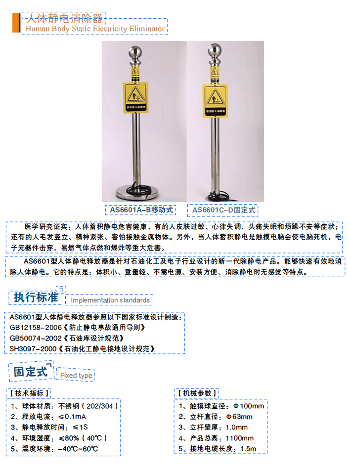 AS6601型人體靜電釋放器是針對石油化工及電子行業(yè)設(shè)計的新一代除靜電產(chǎn)品。
